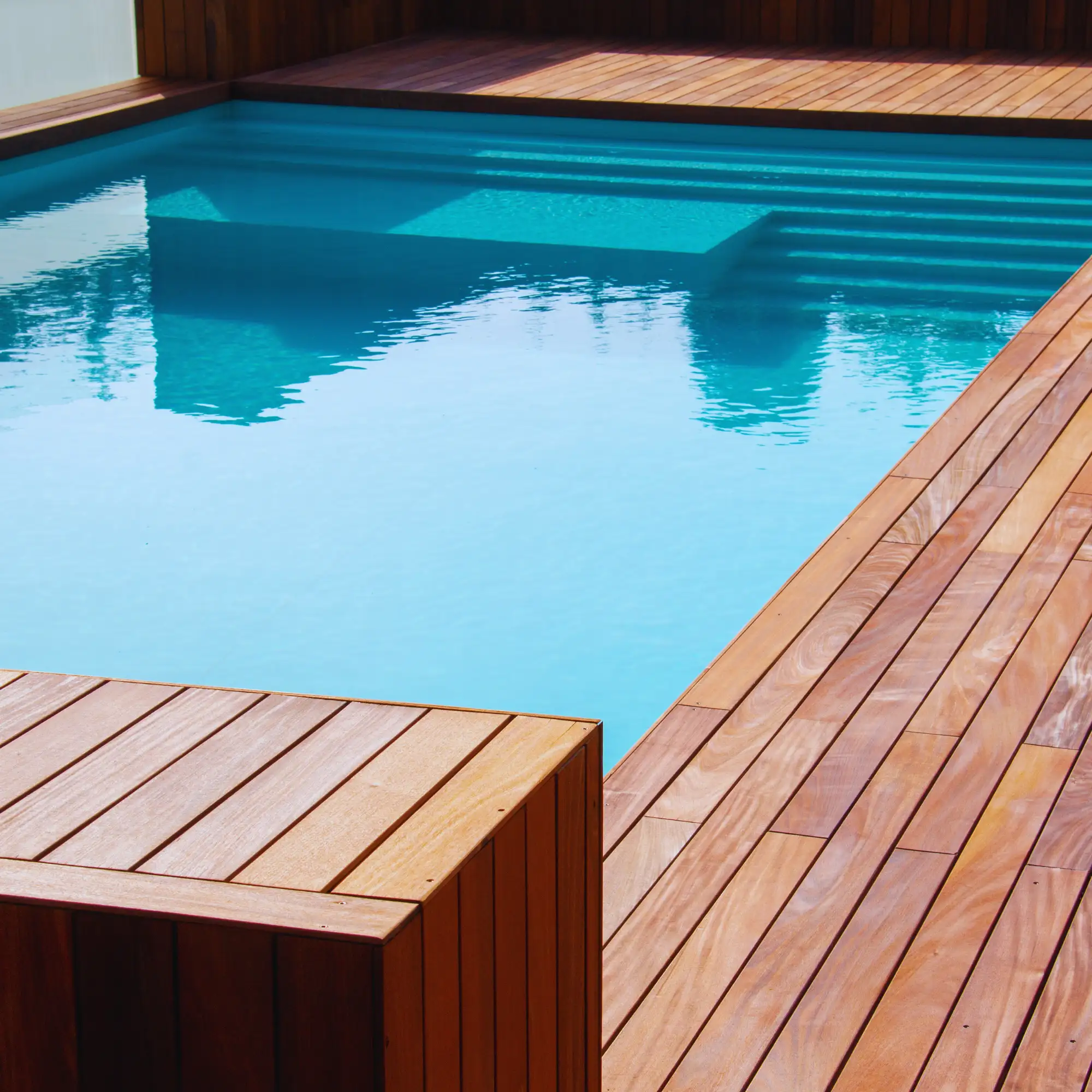 Criação de decks de madeira personalizados para piscinas, áreas externas e espaços de lazer. Projeto, execução e acabamento de alto padrão.